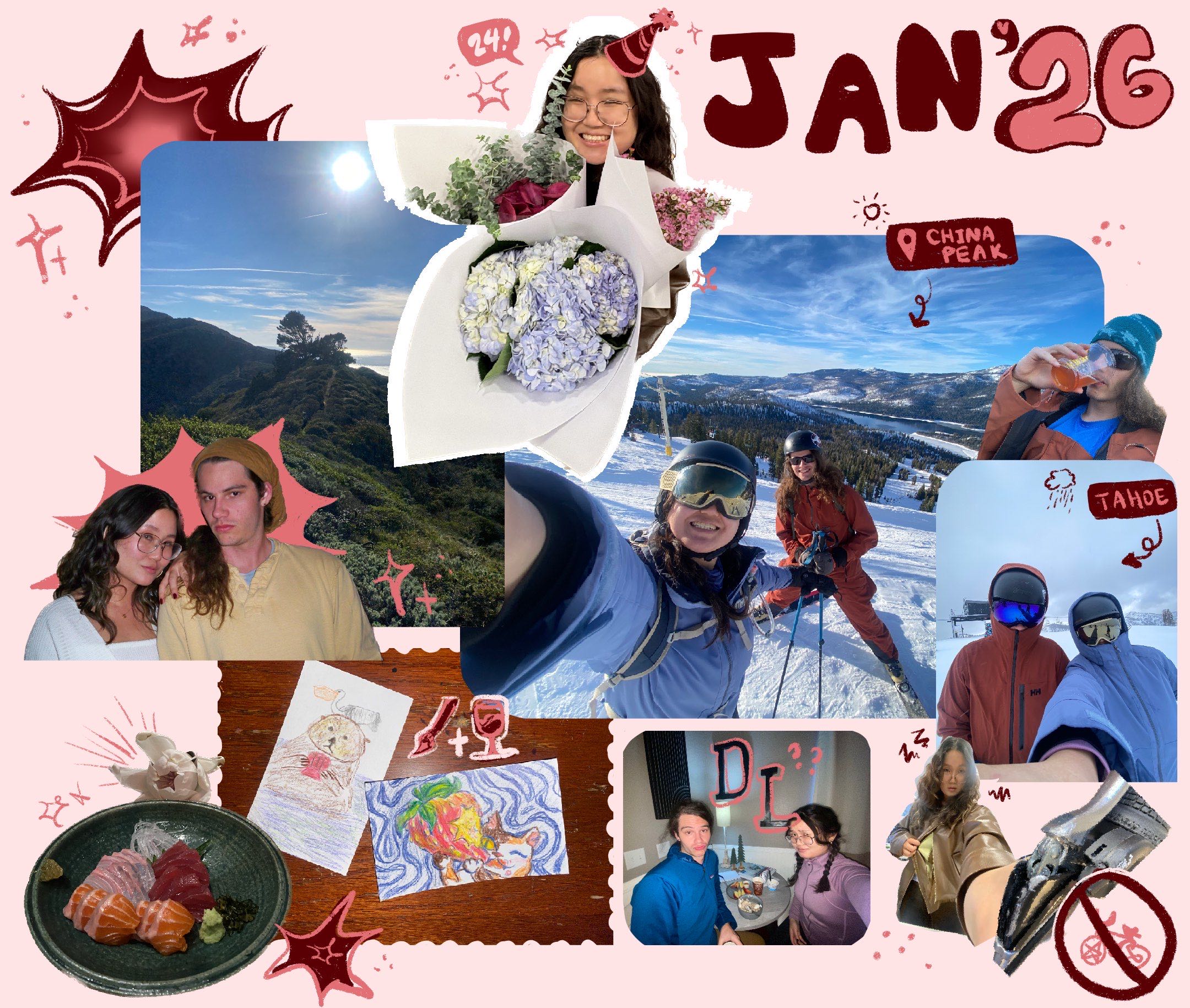 It’s been a skiing-heavy start to the year & lots of friend visiting SF- but I’ve also had a lot of accidents, sicknesses, and overtime work. Ups and downs, as always. In an attempt to share more of the fun pictures I take and the joys in my life while breaking free of Instagram, I’ve decided to scrapbook some of my highlights from each month. Enjoy!